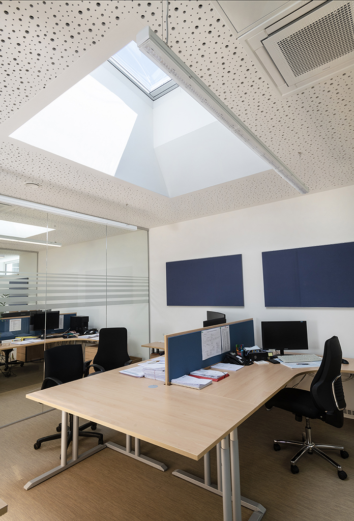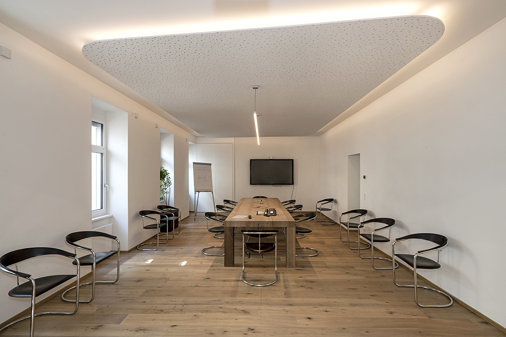 Eine ehemalige Werkstatt in einem Hofgebäude wurde in ein modernes Büro mit Gruppenarbeitsplätzen umgebaut. Durch verschiedene bauliche Maßnahmen wurde die Werkshalle unter Berücksichtigung von Sichtbeziehungen, Tageslicht, funktionaler Raumaufteilung sowie Farb- und Materialkonzepten transformiert.