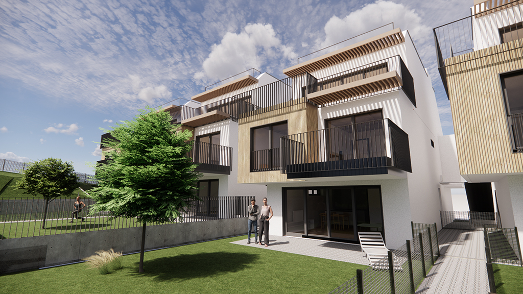 Es sind vier Wohnhäuser mit jeweils zwei Wohneinheiten im Wiener Stadtteil Mauer geplant. Alle Wohnungen sind sowohl zur Straße als auch zum Garten hin ausgerichtet und verfügen über großzügige Außenbereiche in Form von Eigengärten, Terrassen und Balkonen.